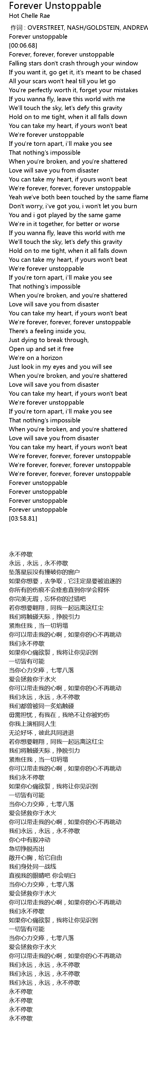 | [03:43.76] | Forever unstoppable |