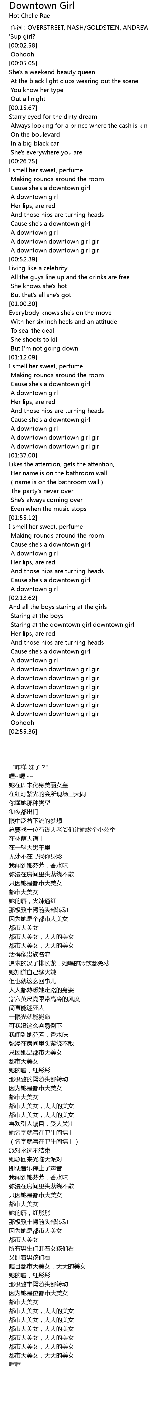 | [02:18.49] | Staring at the downtown girl downtown girl |