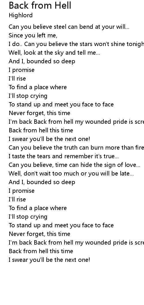 I'm back Back from hell my wounded pride is screaming for you! |