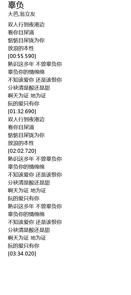 | [02:58.640] | 熟识这多年 不曾辜负你 |