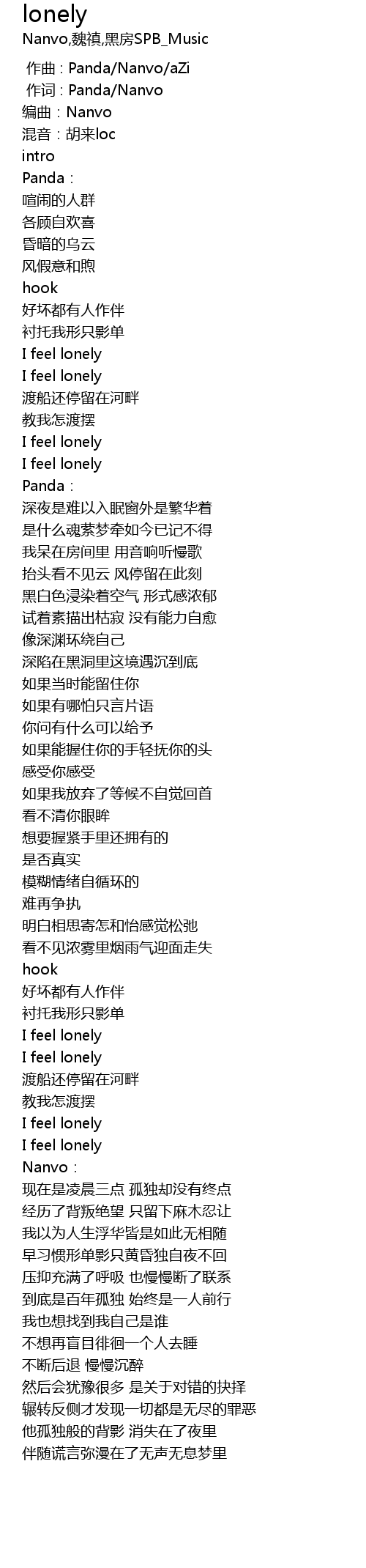| [01:52.25] | I feel lonely |