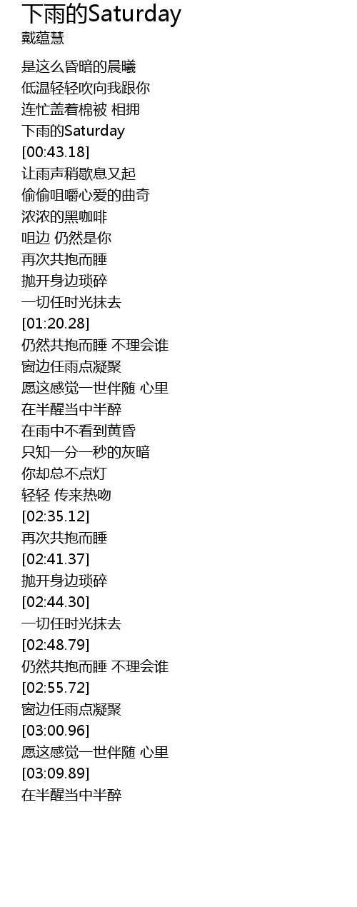 | [00:40.69] | 下雨的Saturday |