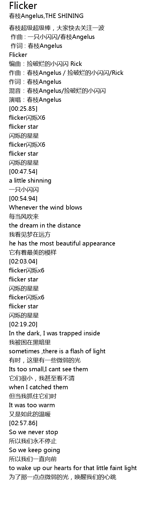 | [02:03.38] | flicker闪烁x6 |