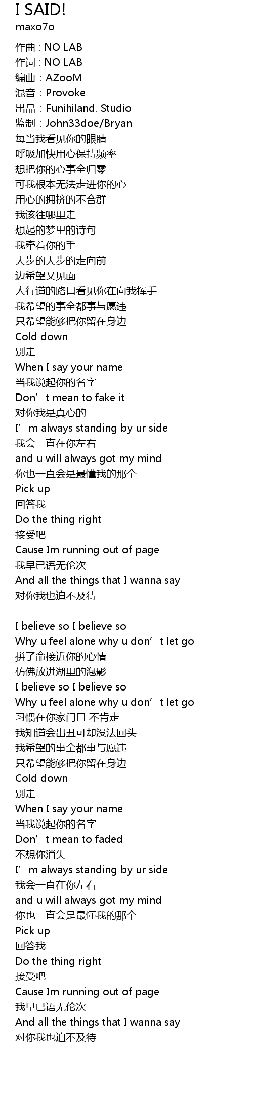 | 作词 : NO LAB | |