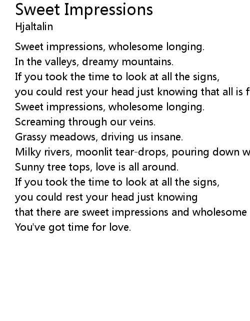 | Sweet impressions, wholesome longing. | |