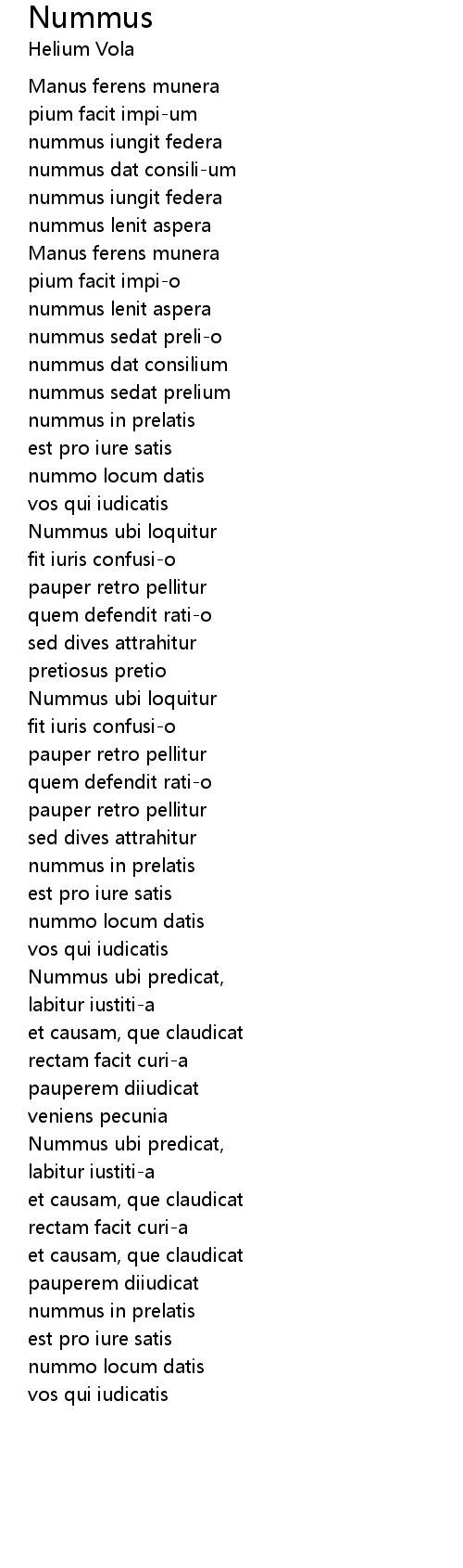 Nummus ubi predicat, |