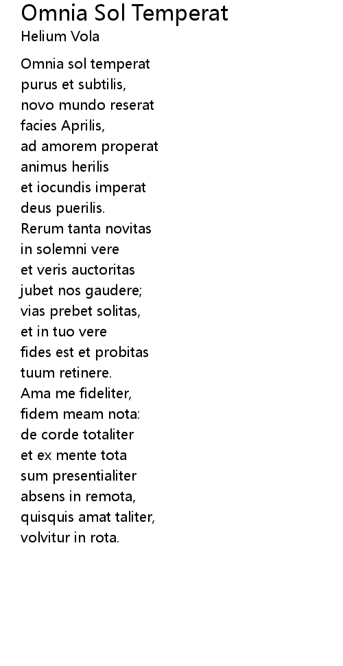 | Song | Omnia Sol Temperat |