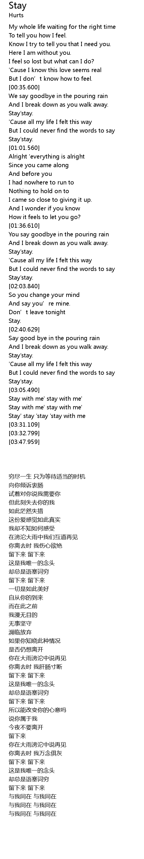 | [03:19.390] | Stay' stay ' stay ' stay with me |
