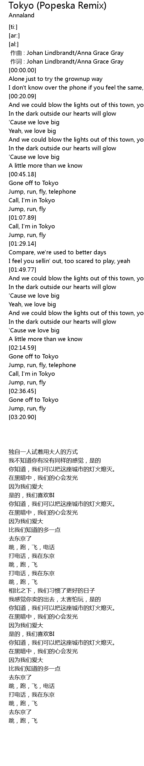 | [00:46.14] | Gone off to Tokyo |