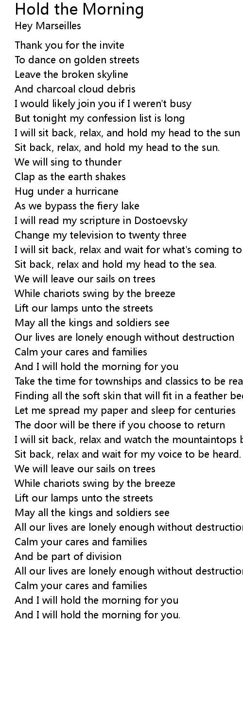 And I will hold the morning for you. |