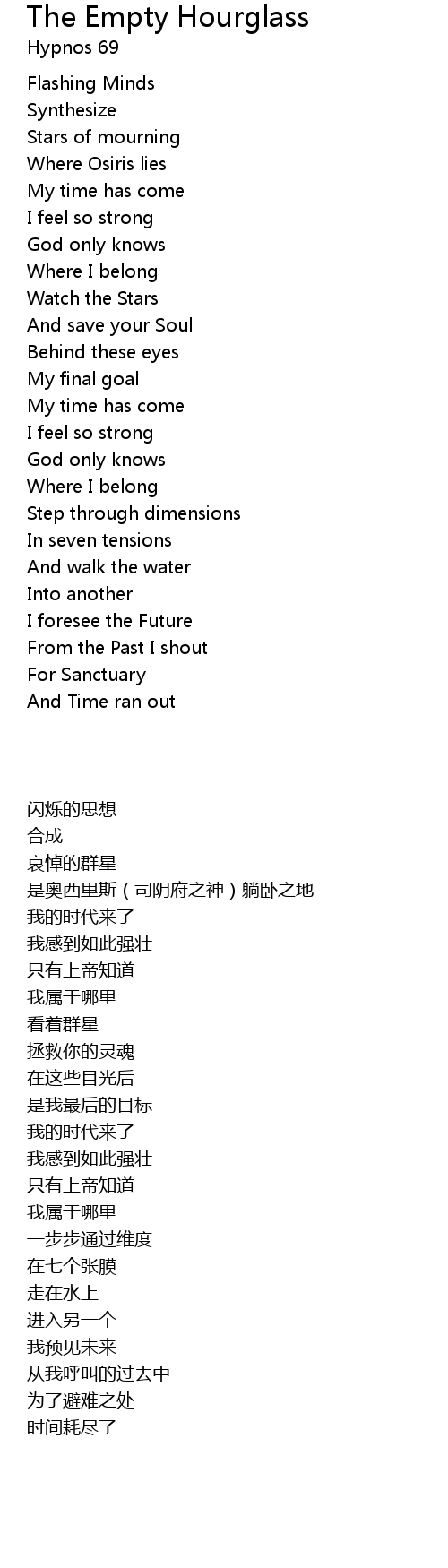 The Empty Hourglass Lyrics
