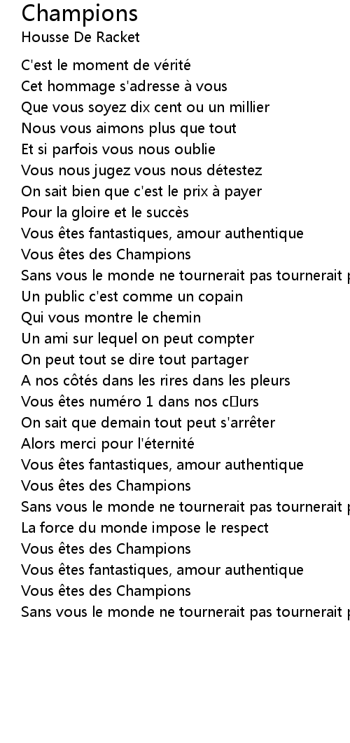 | Vous tes des Champions | |
