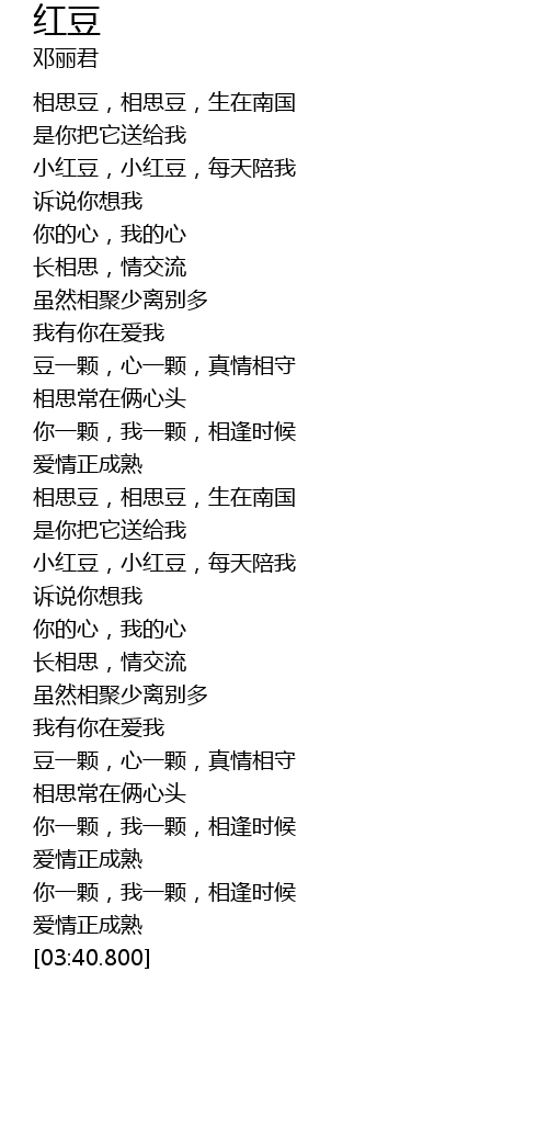 | [02:38.800] | 相思豆,相思豆,生在南国 |