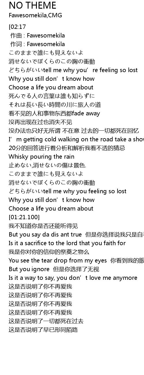 | [00:01.000] | 作词 : Fawesomekila |