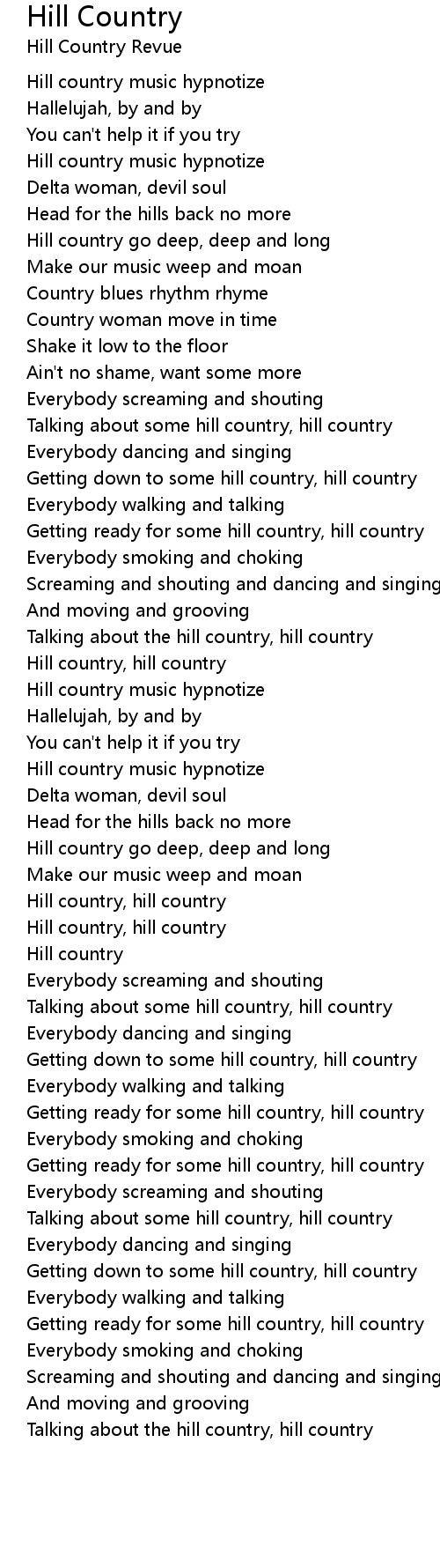 Hill country, hill country |