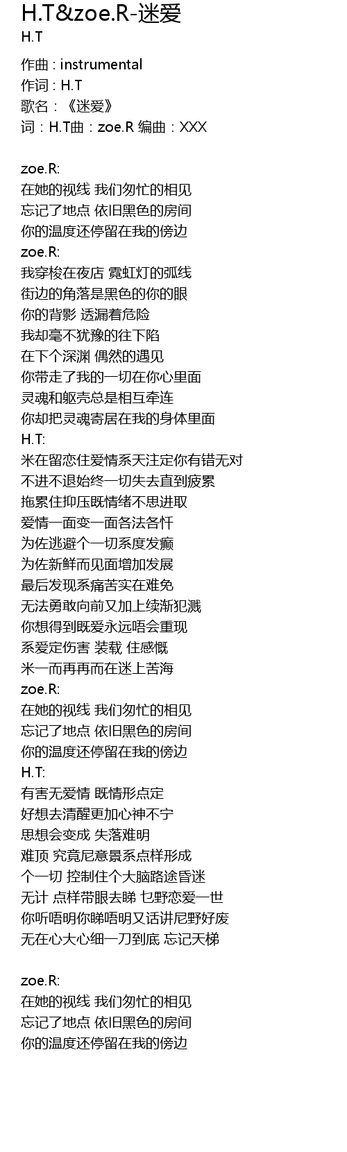 | 词:H.T曲:zoe.R 编曲:XXX | |