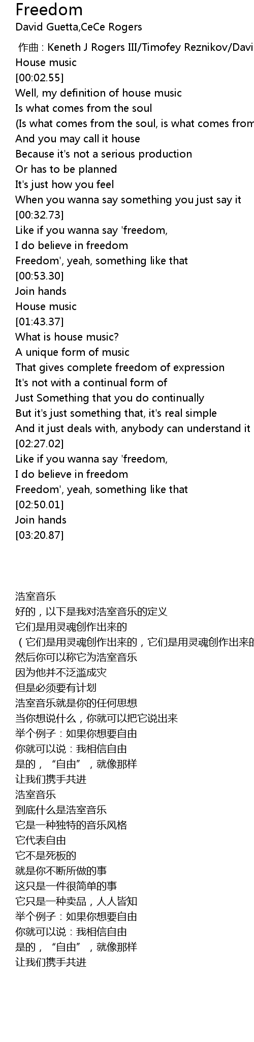 | [02:39.65] | I do believe in freedom |