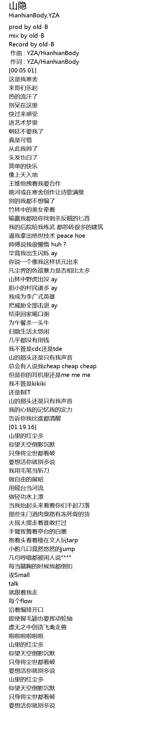 | [00:01.000] | 作词 : YZA/HianhianBody |