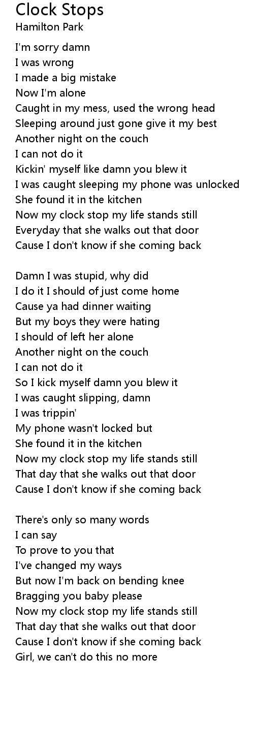 Now my clock stop my life stands still |