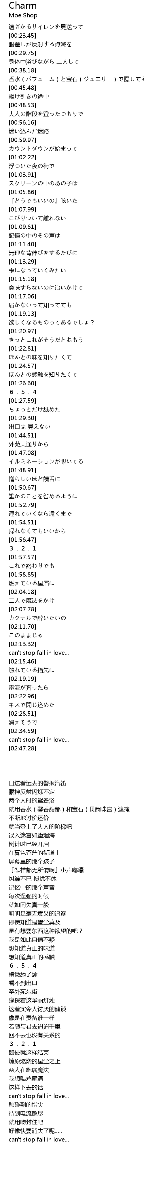 | [00:38.18] | 香水(パフューム)と宝石(ジュエリー)で隠してる |