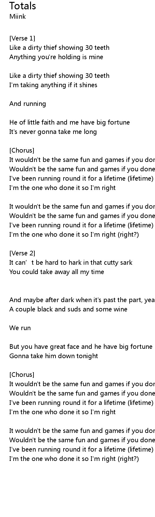 | Wouldn't be the same fun and games if you done it to me | |