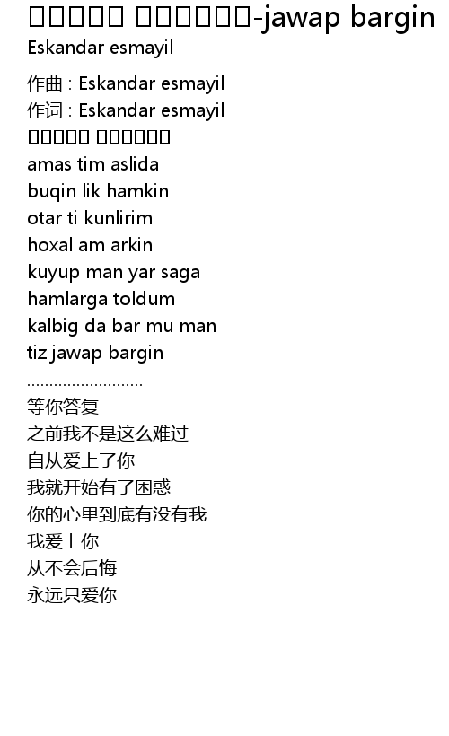 | Song | جاۋاپ بەرگىن-jawap bargin |