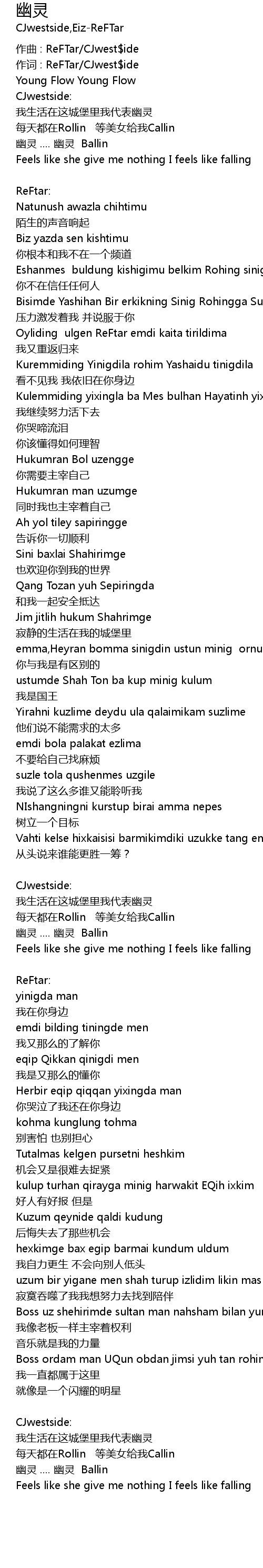| 作词 : ReFTar/CJwest$ide | |