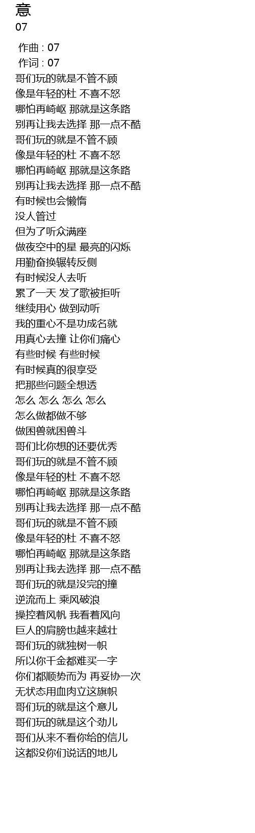 | [01:17.899] | 哥们玩的就是不管不顾 |