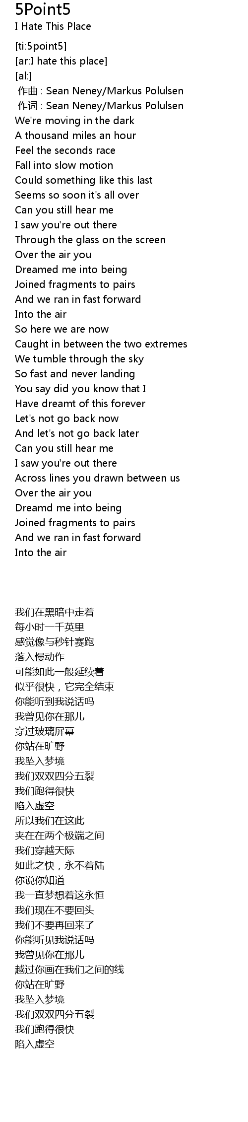 | [00:01.00] | zuo ci : Sean Neney Markus Polulsen |