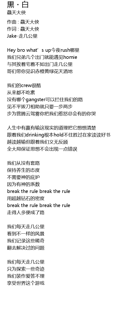| 作词 : 飝天大俠 | |