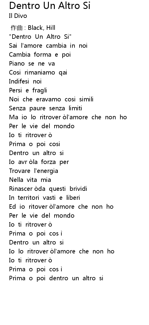 | [03:41.140] | Io lo ritrover o l' amore che non ho |