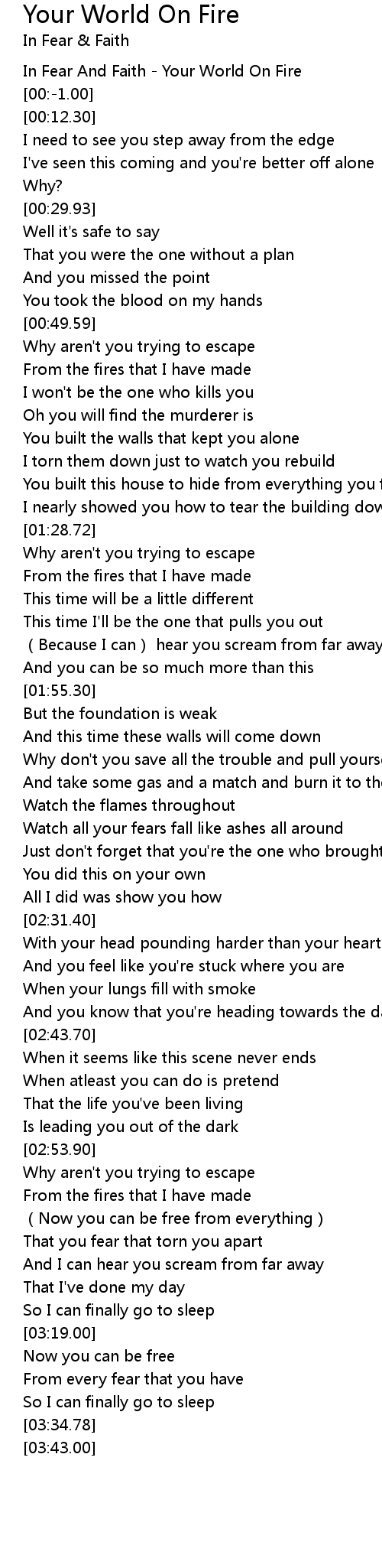 | [00:-2.00] | In Fear And Faith Your World On Fire |