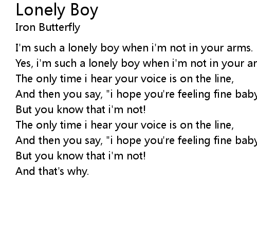 | Yes, i'm such a lonely boy when i'm not in your arms. | |