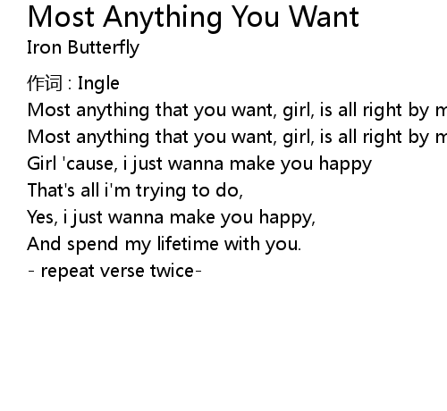 | Song | Most Anything You Want |