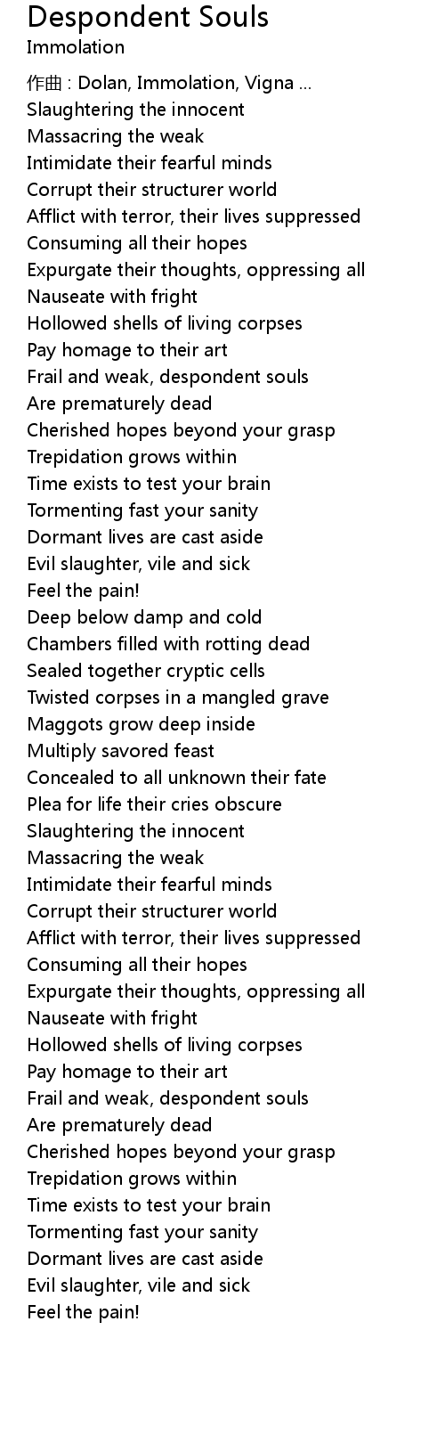 | 作曲 : Dolan, Immolation, Vigna ... | |