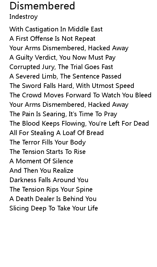 | Your Arms Dismembered, Hacked Away | |