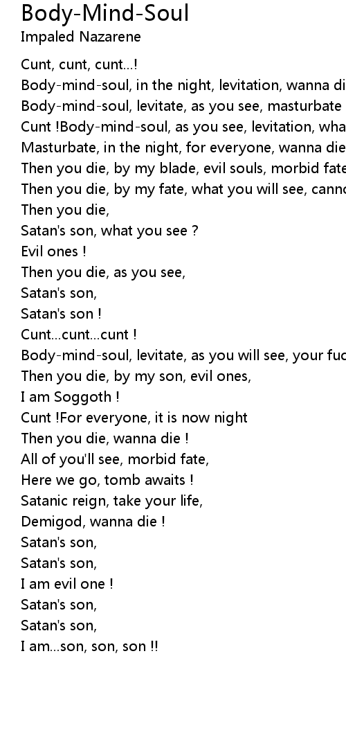 Cunt !Body-mind-soul, as you see, levitation, what's your bleed ? |