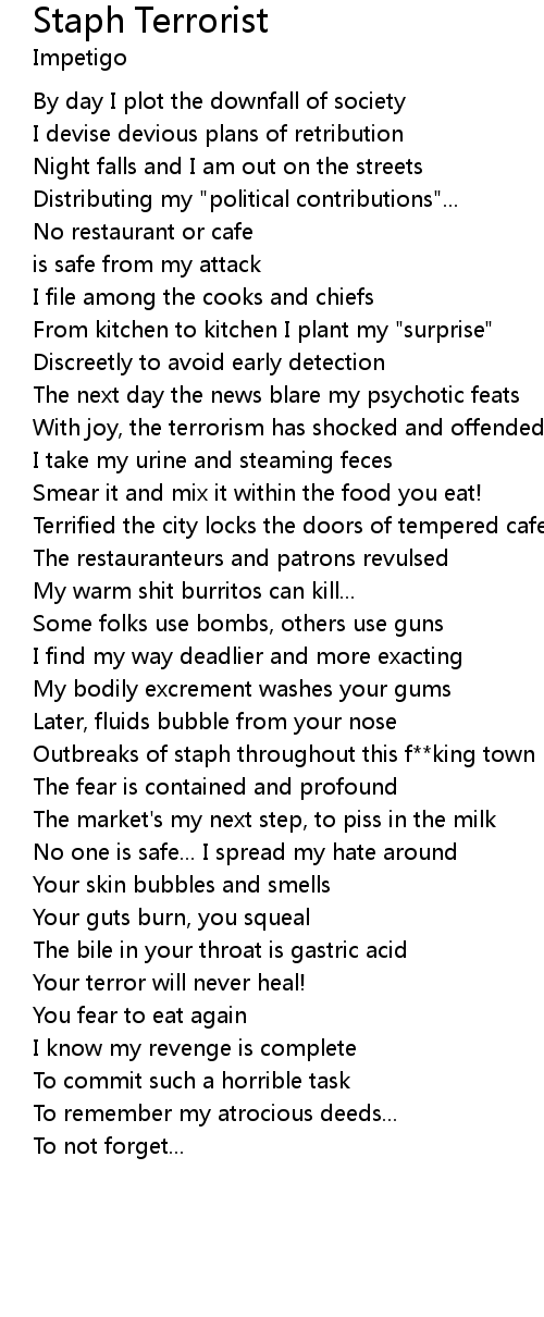 Outbreaks of staph throughout this f**king town |