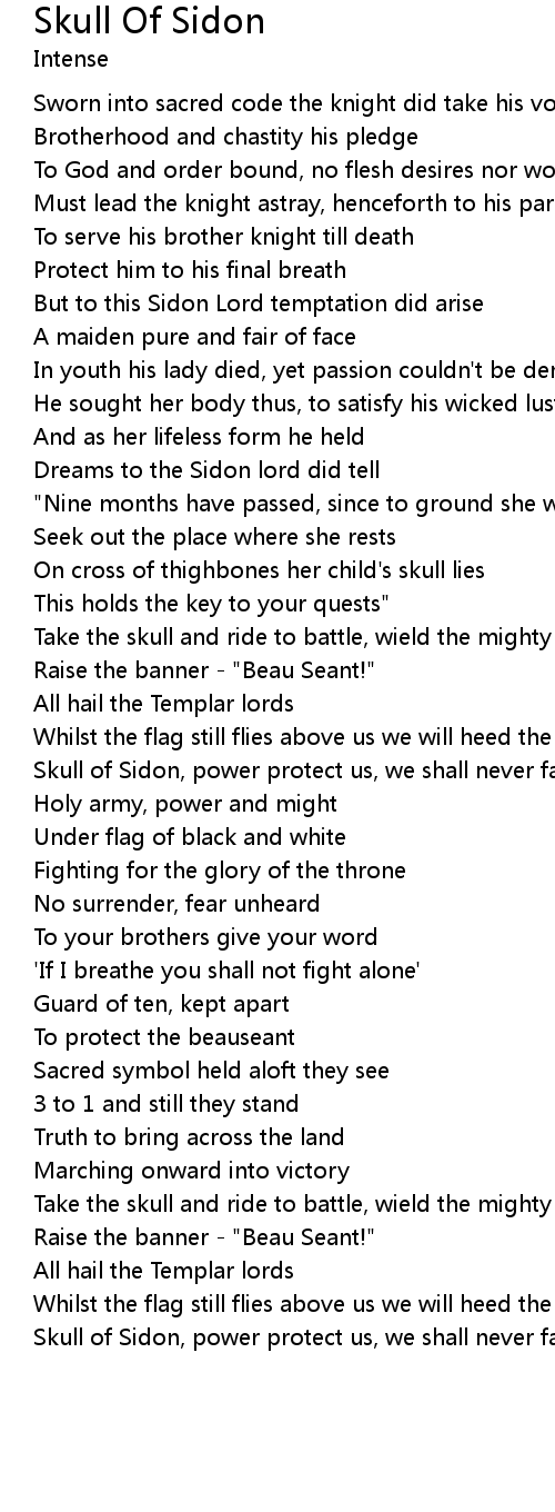 Skull of Sidon, power protect us, we shall never fall |