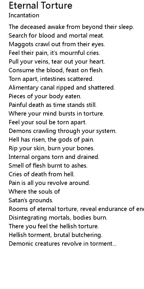 Rooms of eternal torture, reveal endurance of endless pain. |