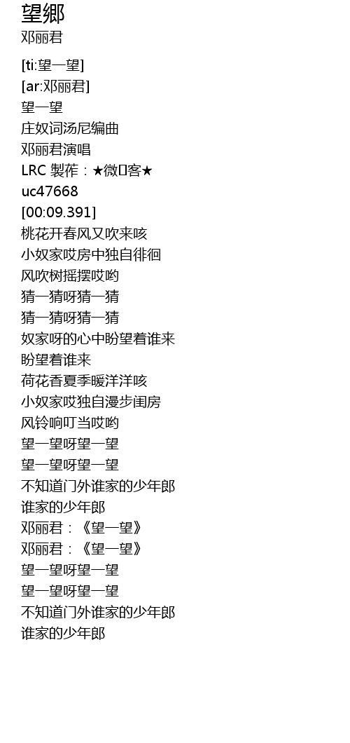 | [02:08.967] | dèng lì jūn: wàng yī wàng |