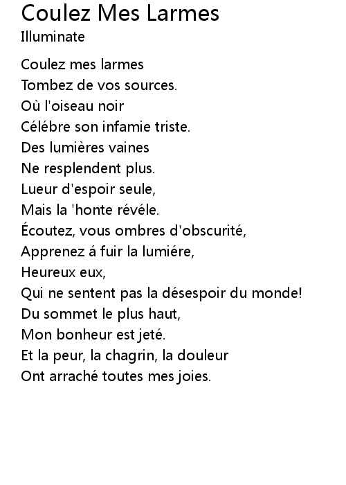 | Coulez mes larmes | |