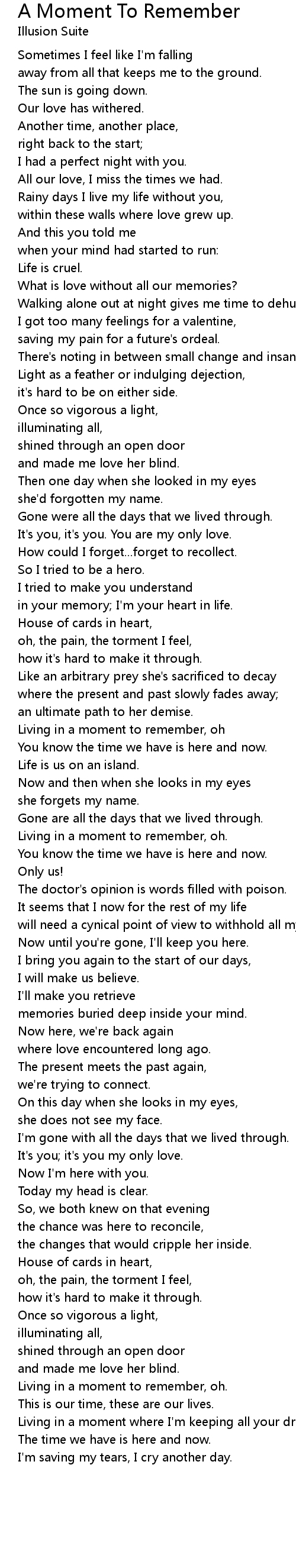 Living in a moment to remember, oh. |