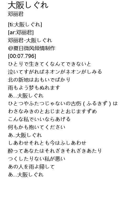 | [00:00.941] | 邓丽君-大阪しぐれ |