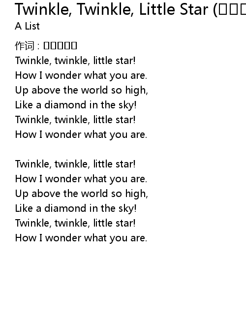 | Song | Twinkle, Twinkle, Little Star (반짝반짝 작은별) |
