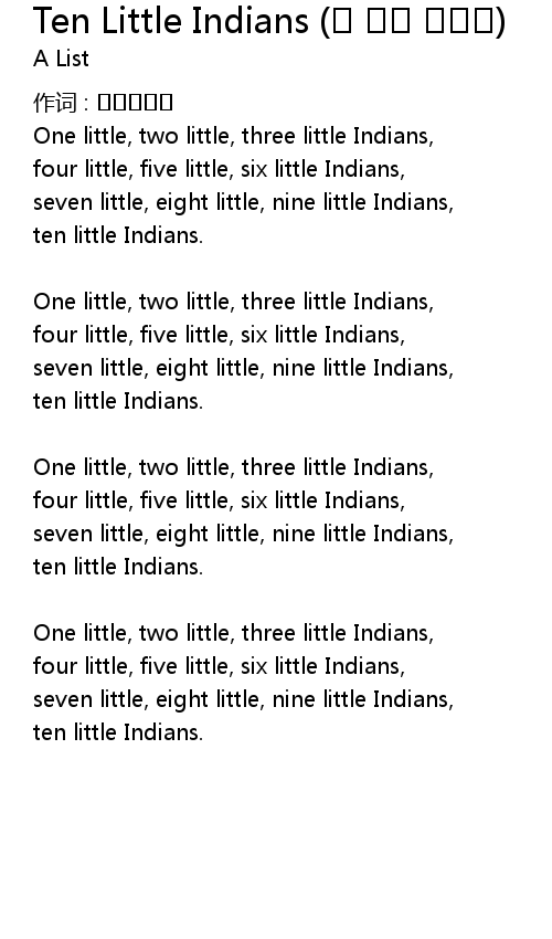 | Song | Ten Little Indians (열 꼬마 인디언) |