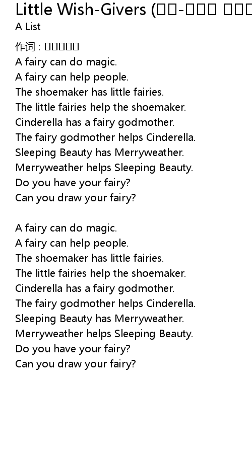 | Song | Little Wish-Givers (챈트-마법의 요정들) |