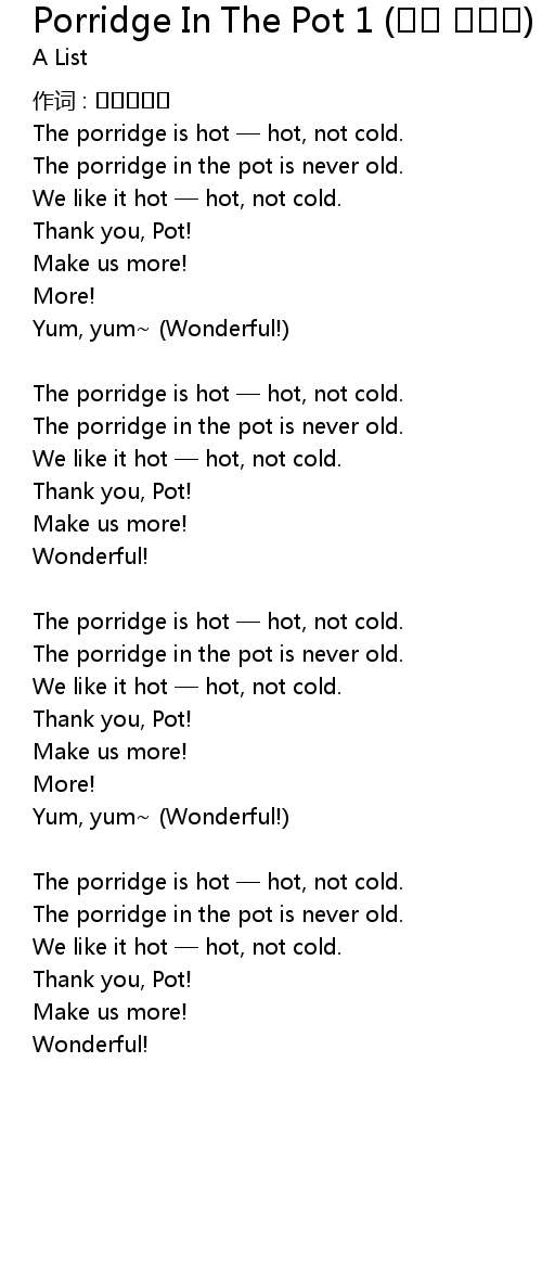 | Song | Porridge In The Pot 1 (요술 항아리) |