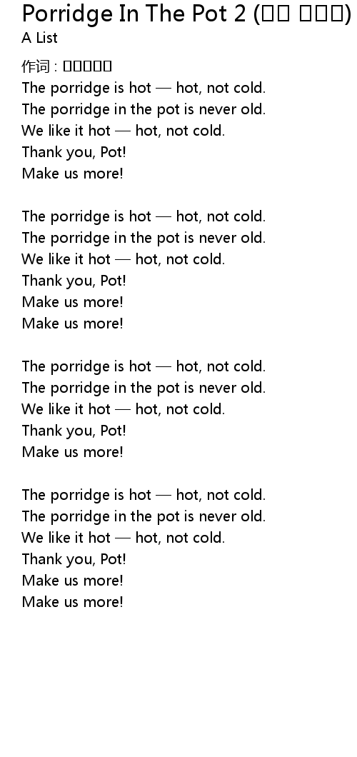 | Song | Porridge In The Pot 2 (요술 항아리) |