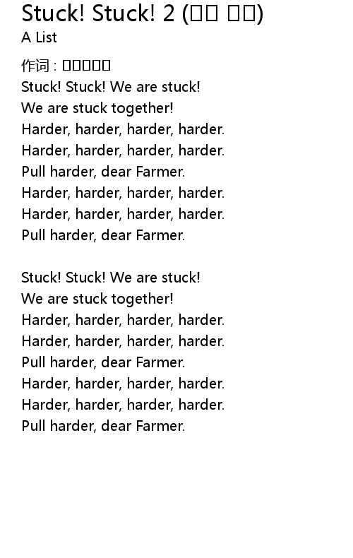 | Song | Stuck! Stuck! 2 (황금 거위) |